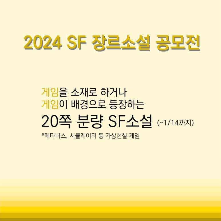 선정되신 5분의 작가님께는 각, 상금 20만원이 지급될 예정이며, 선정작은 <2024 SF 장르소설 수상작> 제목의 소설집으로 출간됩니다.
