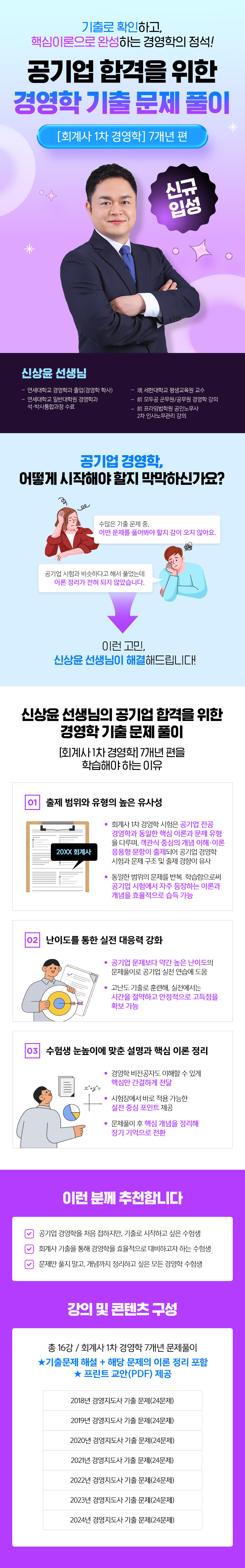 신고글 NEW] [최신] 신상윤의 공기업 합격을 위한 경영학 기출 문제 풀이 [회계사 1차 경영학 7개년 편]