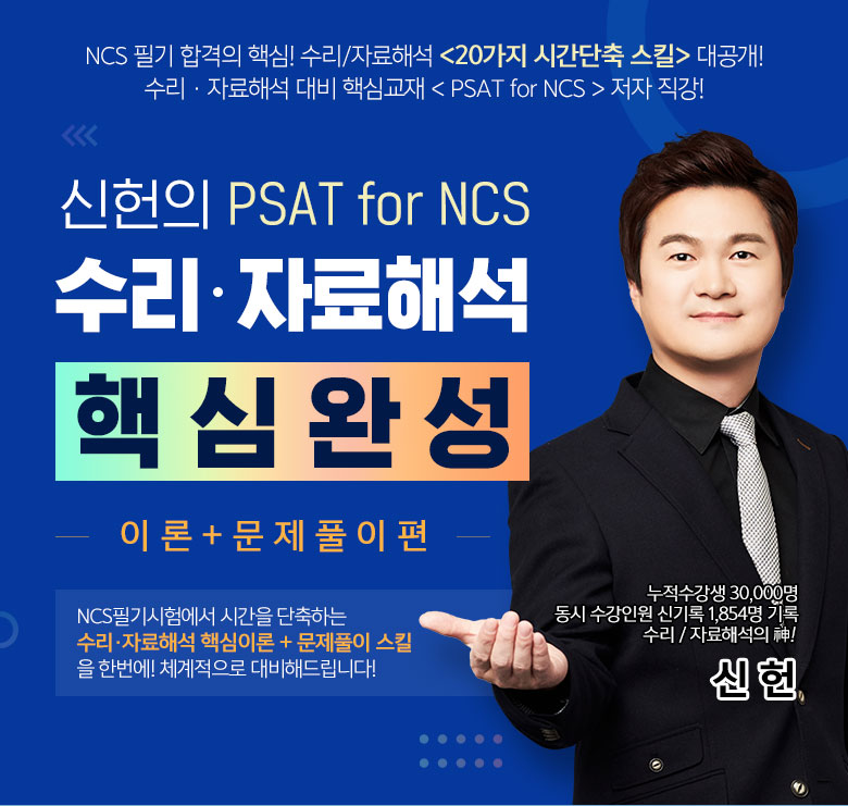 수리/자료해석의 神 신헌 선생님의 PSAT for NCS 수리/자료해석 핵심완성 강의가 런칭 되었습니다!